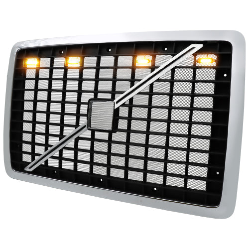 Front Hood Radiator Grille Grill Fit for 2004-2017 Volvo VNL Semi Trucks with Bug Screen and Light Strip (TR003)