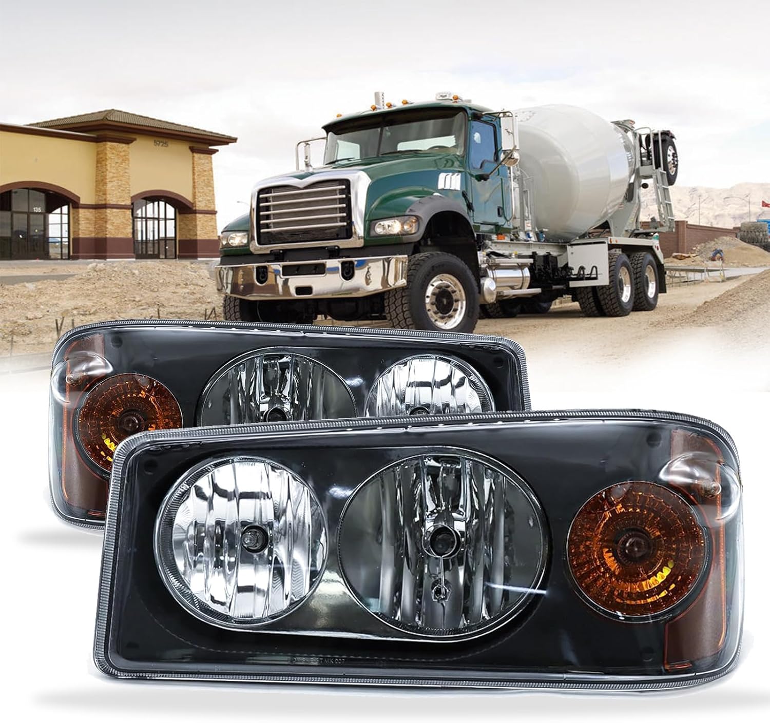 Headlights Assembly Fit for Mack Granite GU713 Lamp with Halogen Bulbs and Warm White,Both Sides Compatible with Select Mack Model Right Passenger,Left Driver Side (pair)